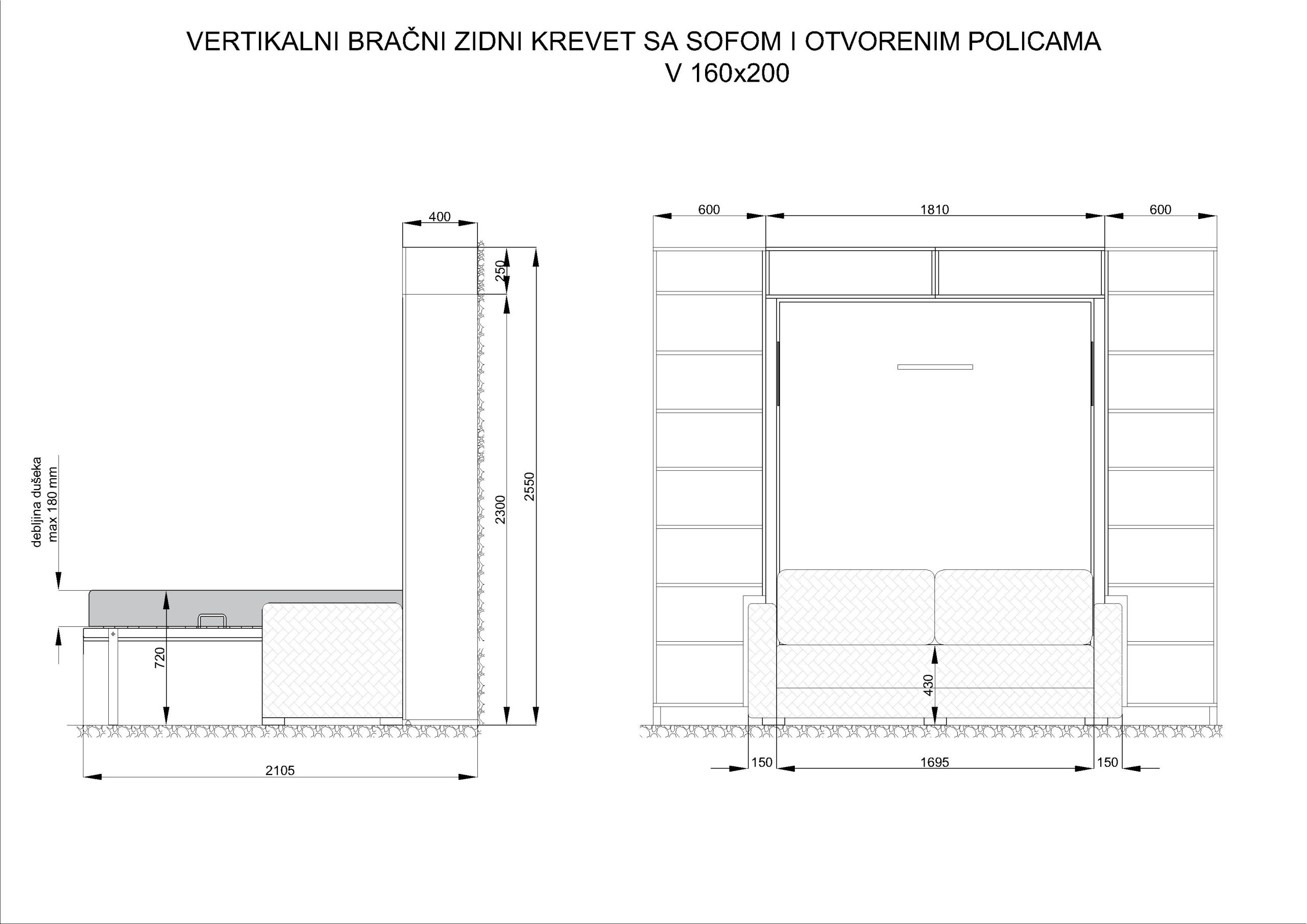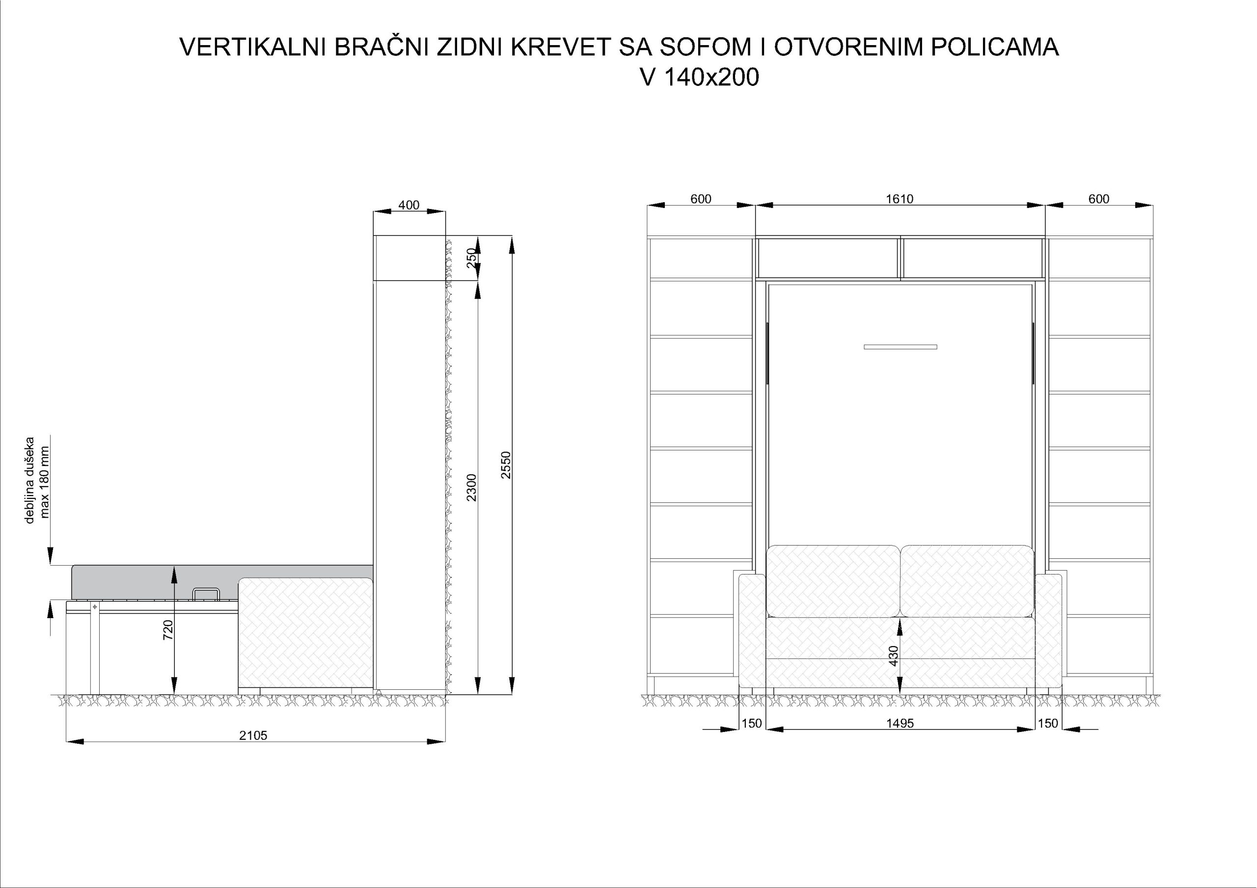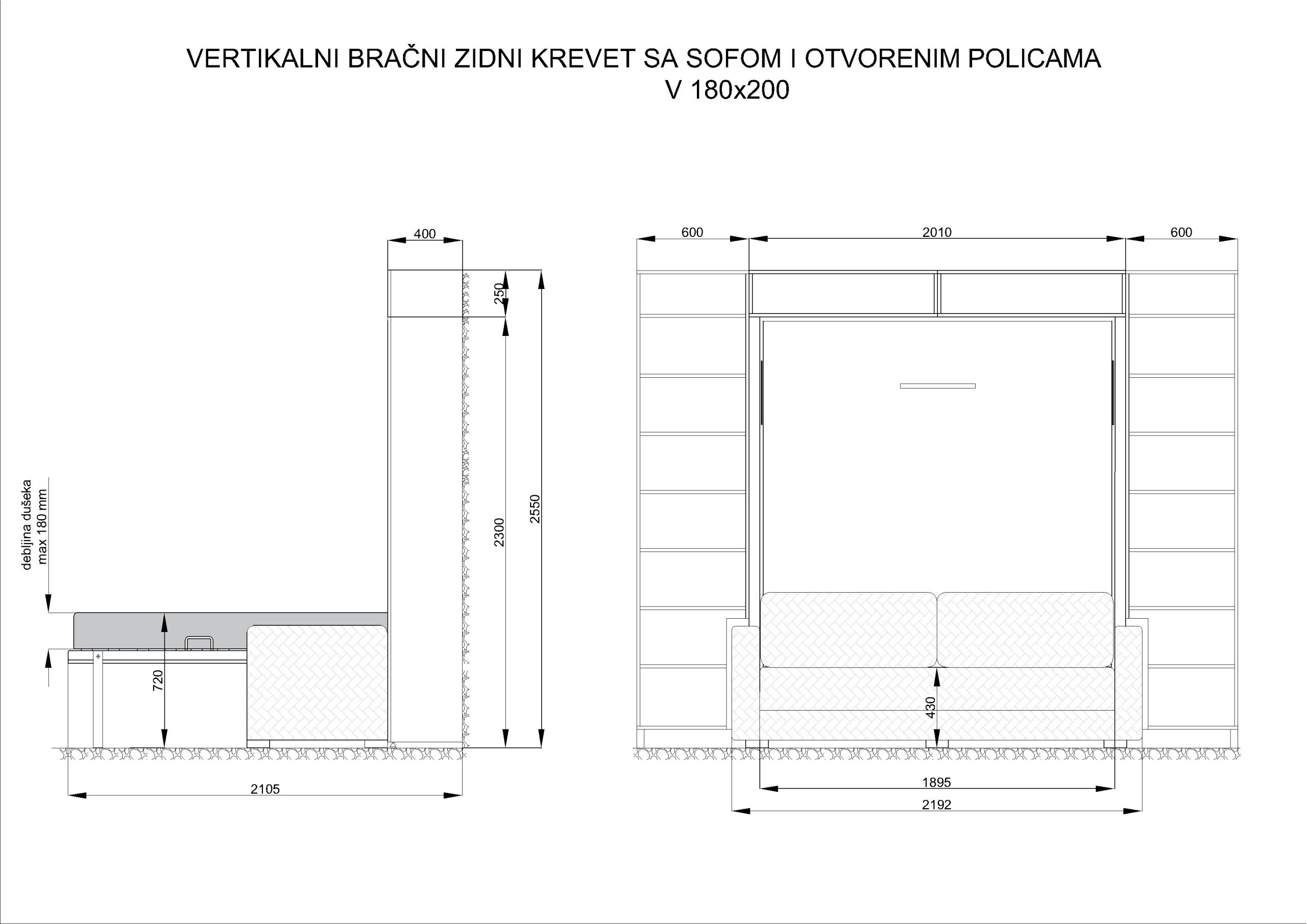 U slučaju da želite deblji dušek kontaktirajte nas, radi potrebnog produbljavanja kućišta kreveta.