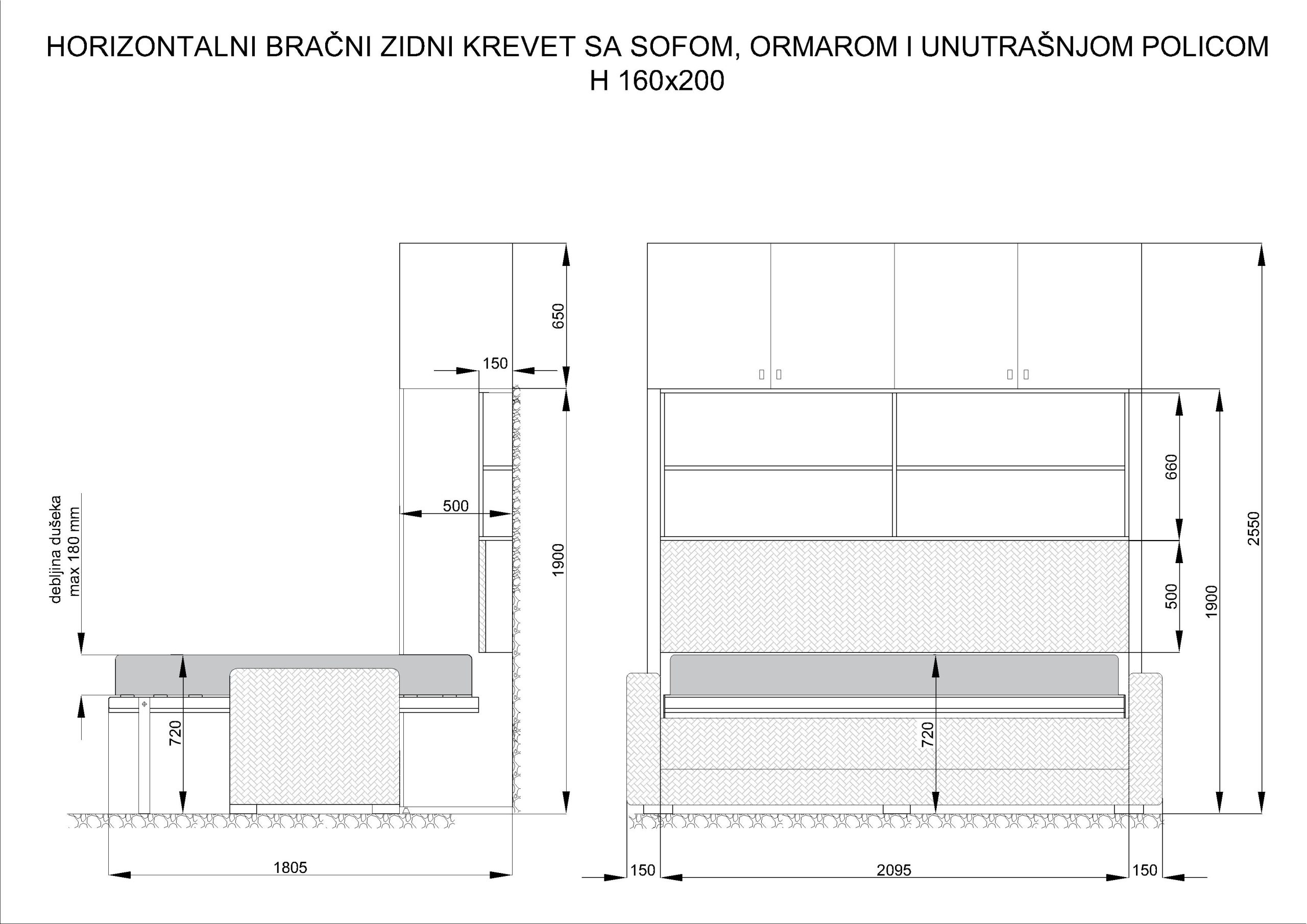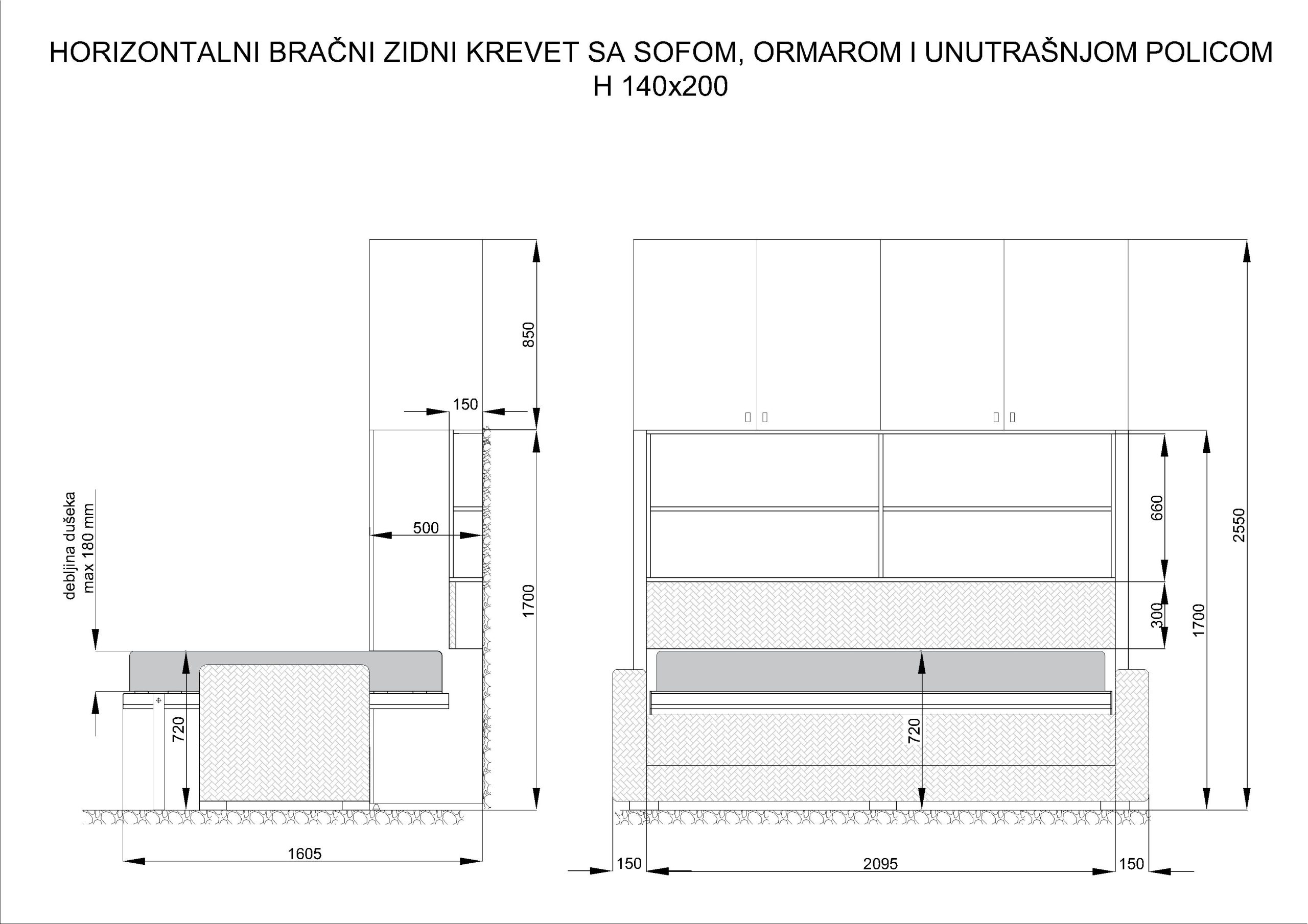 U slučaju da želite deblji dušek kontaktirajte nas, radi potrebnog produbljavanja kućišta kreveta.