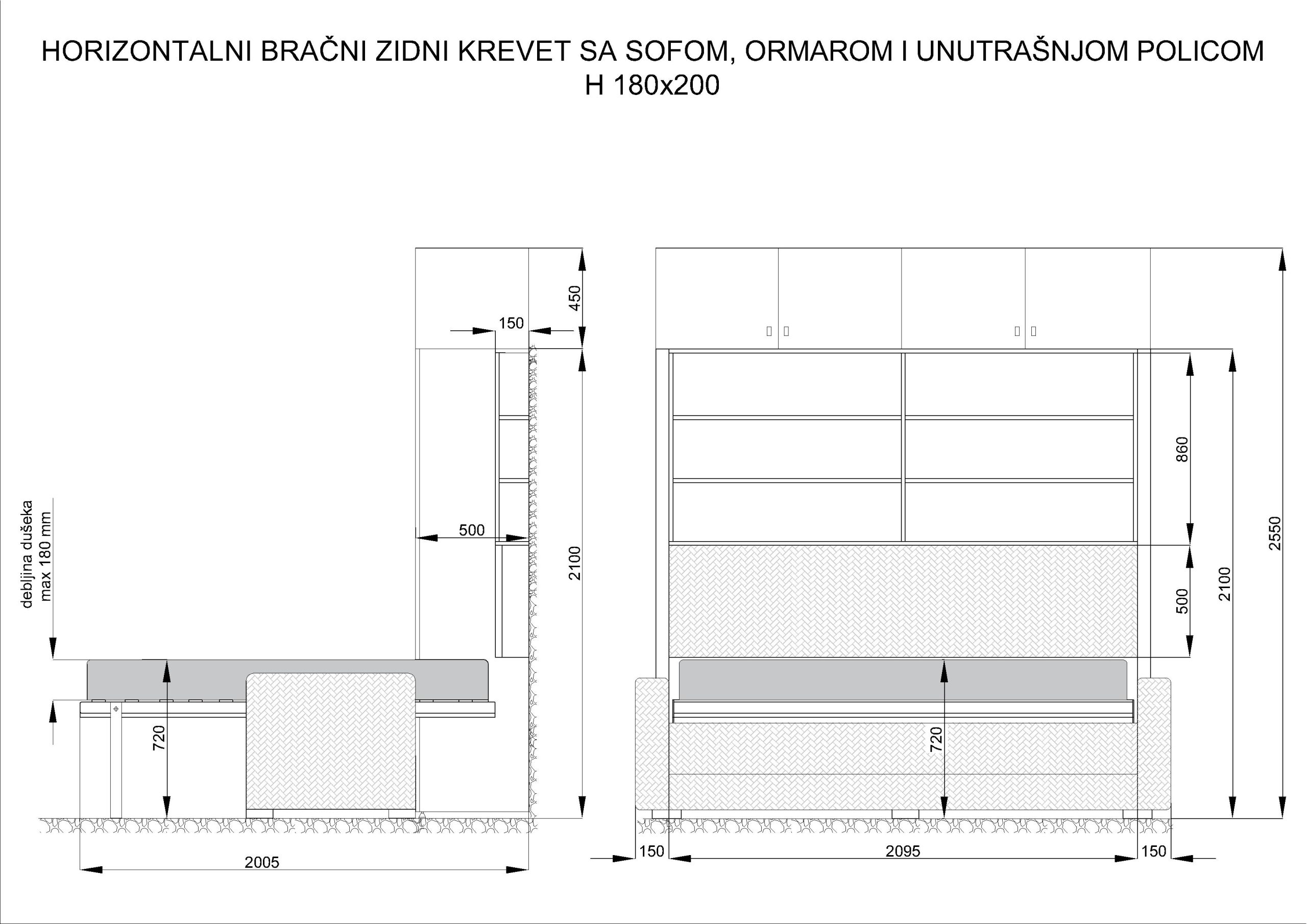 a) Zidni krevet sa pričvršćenjem za pod i plafon (plafon mora da bude od betona).