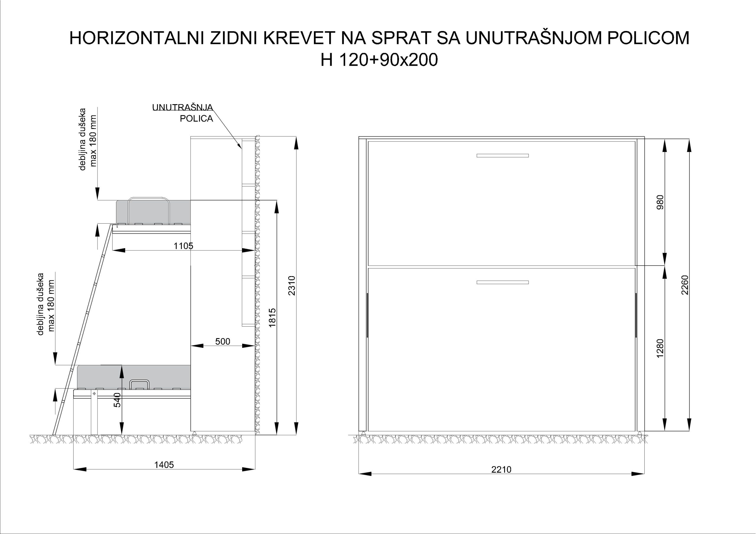 U slučaju da želite drugačiji dezen iverice ili drugu vrstu obloge zidnog kreveta, kontaktirajte nas.