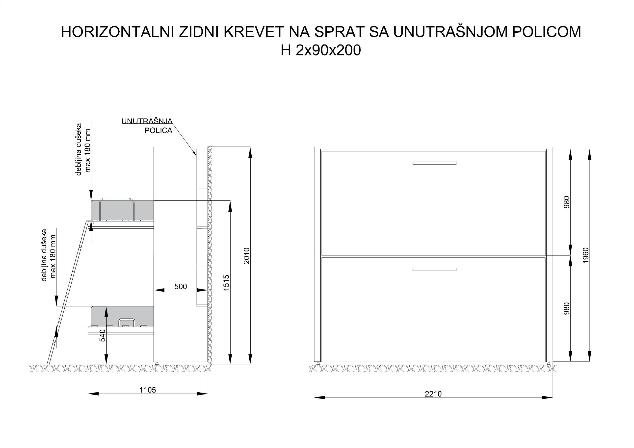 KREVET NA SPRAT SA POLICAMA UNUTAR KREVETA