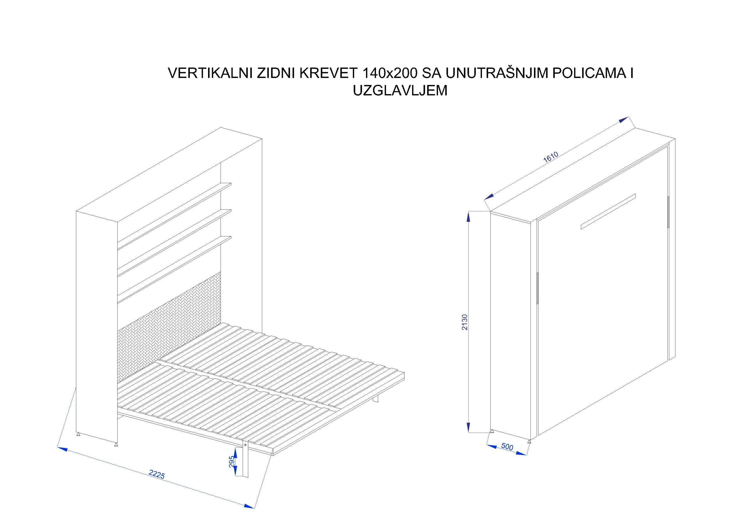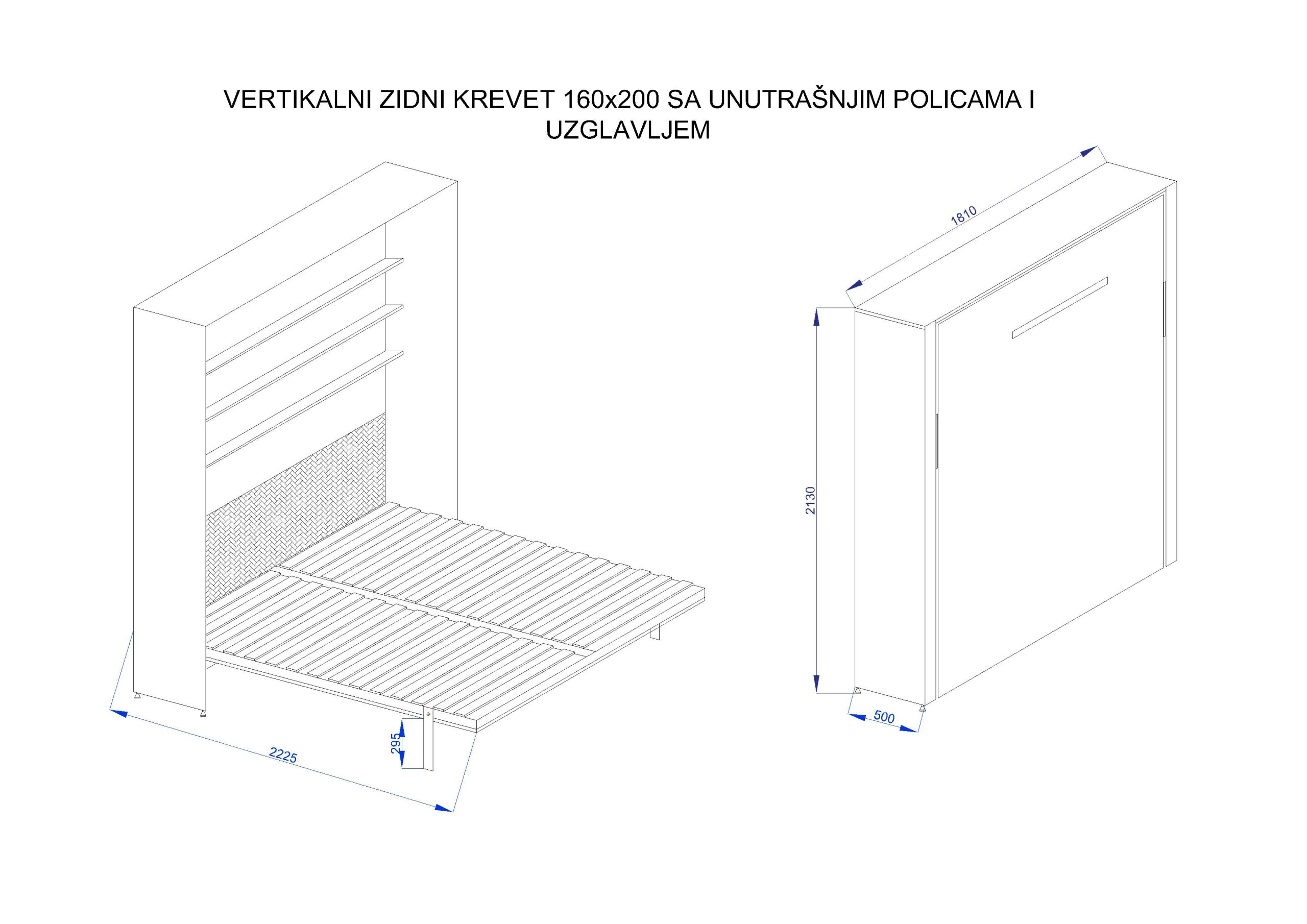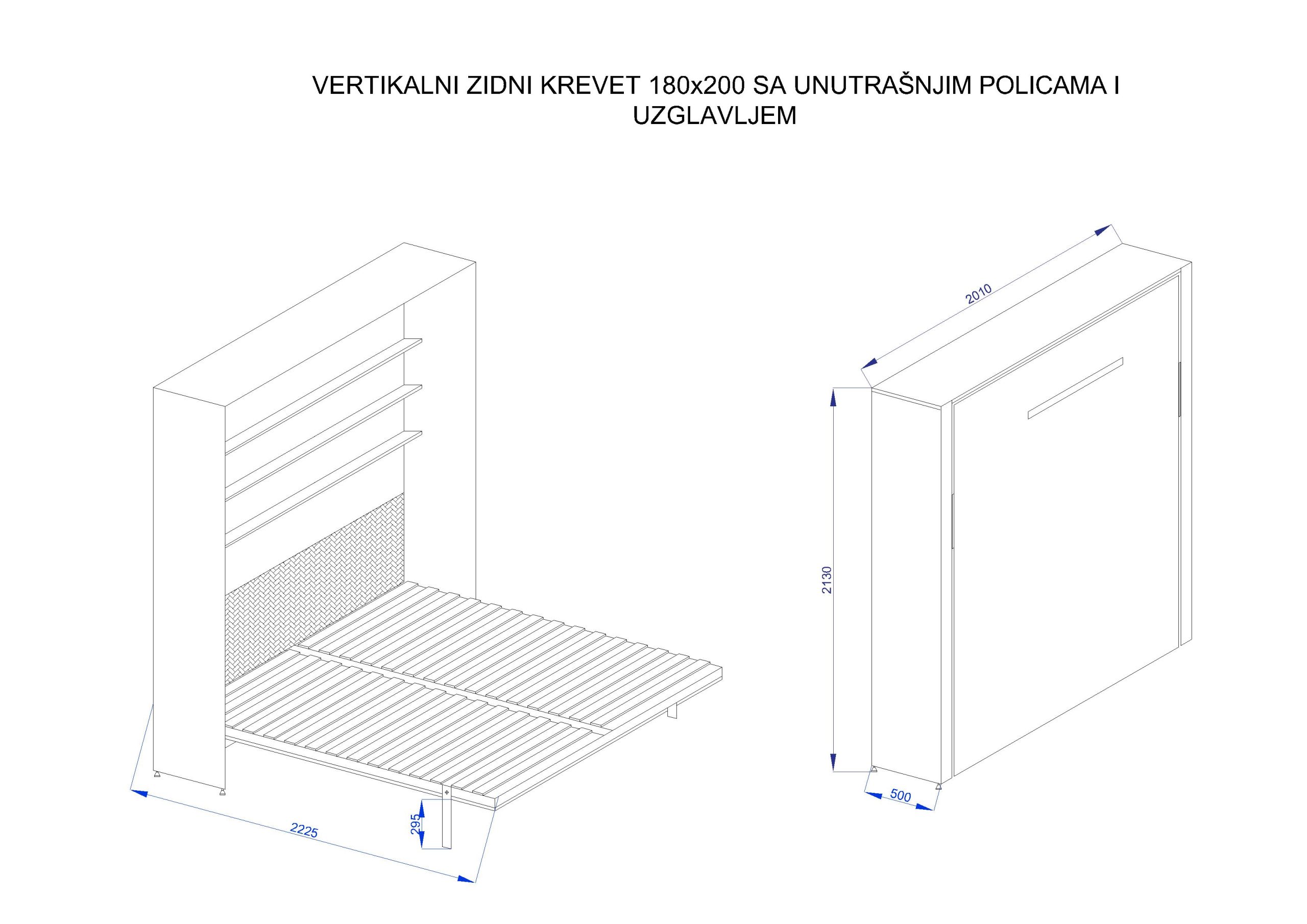 VERTIKALNI BRAČNI ZIDNI KREVET SA UNUTRAŠNJOM POLICOM