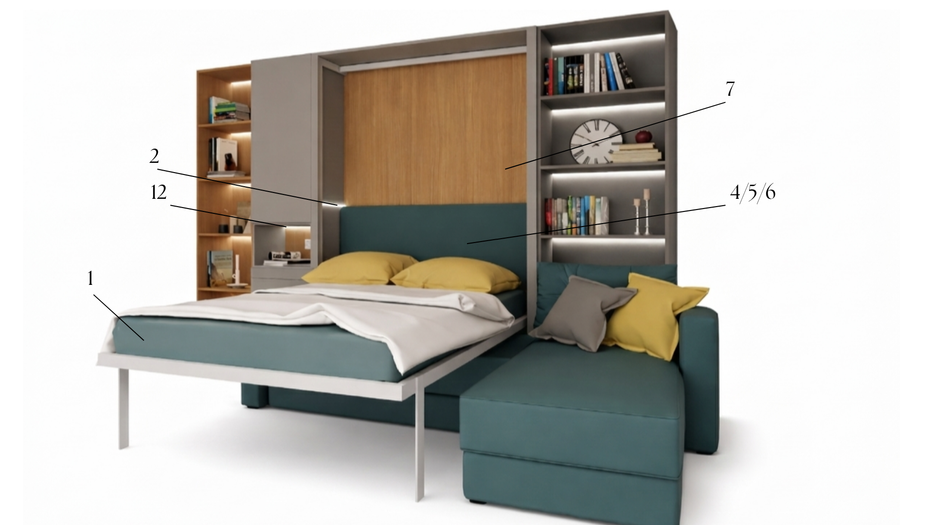 b) Samostojeći zidni krevet (krevet se ne fiksira na zid ili plafon, već ima ploču za stabilizaciju ispred sebe).