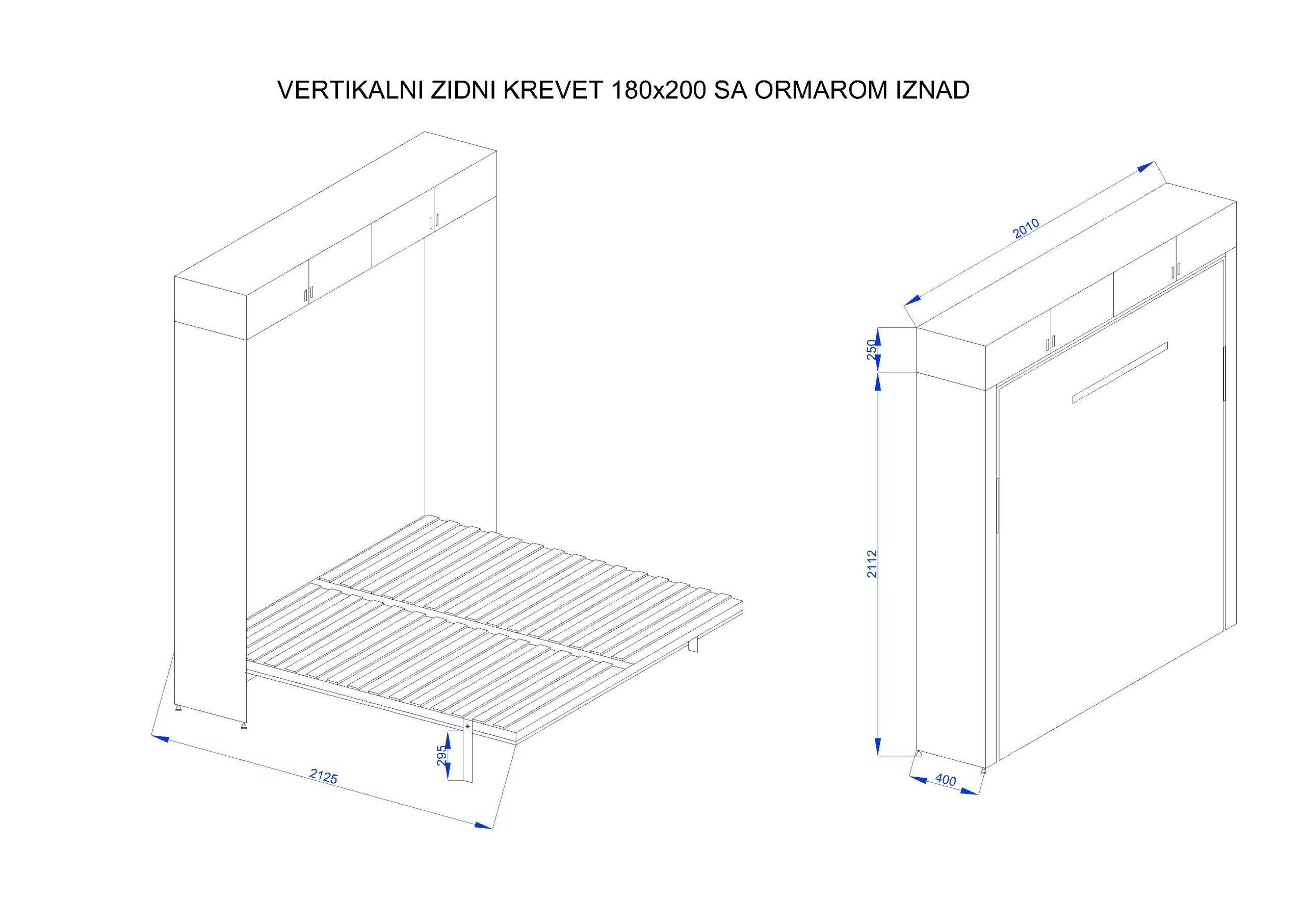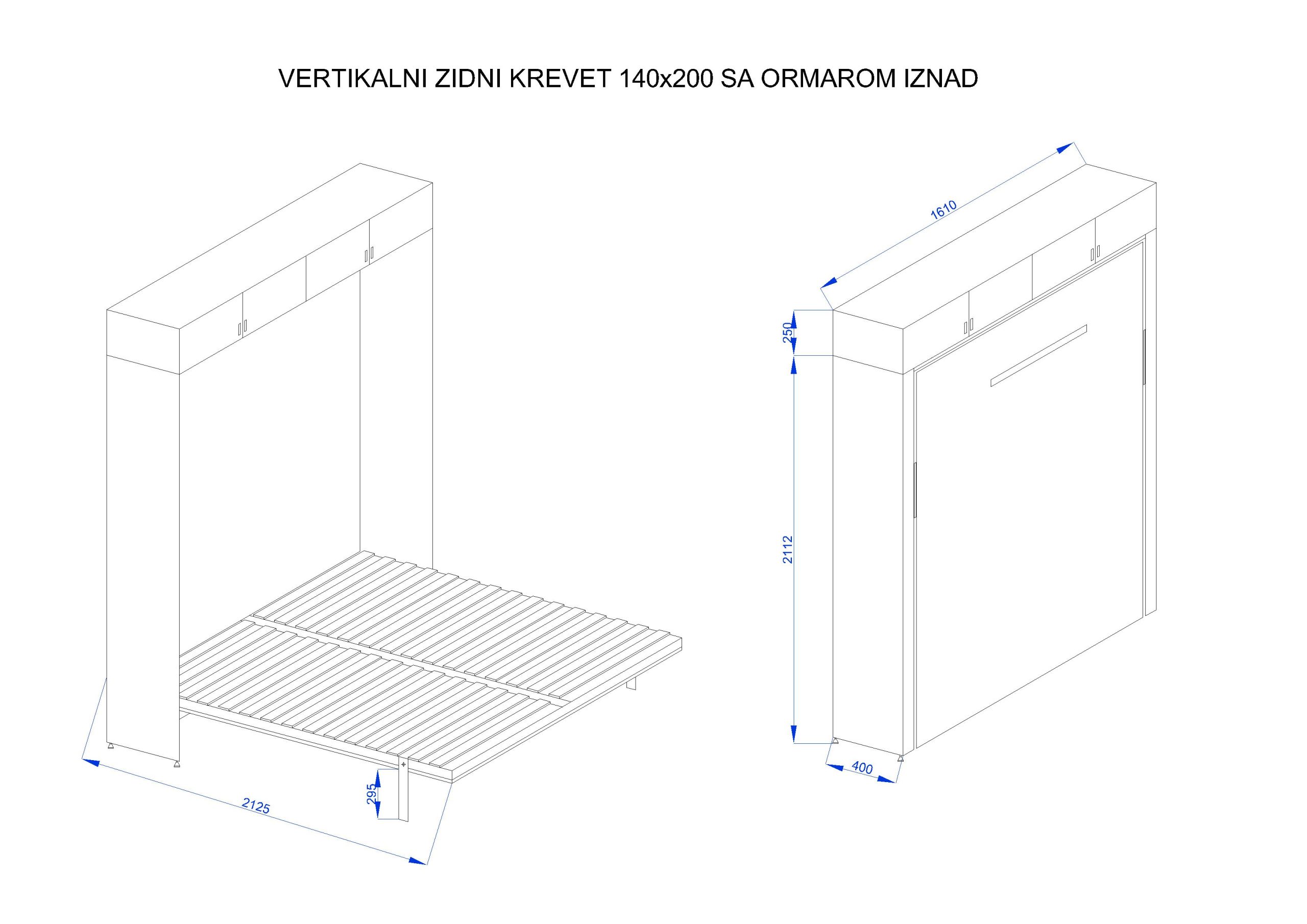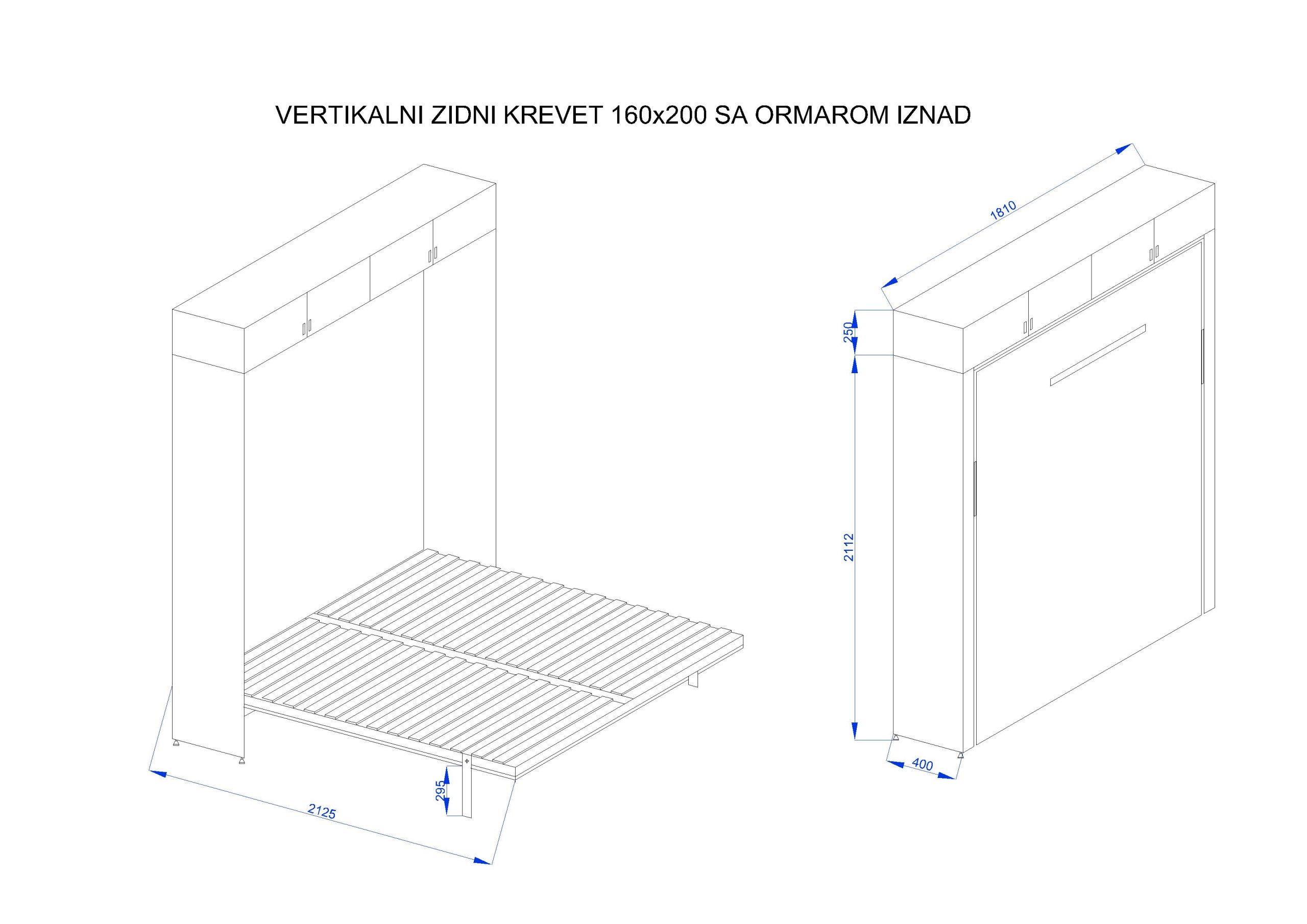 VERTIKALNI BRAČNI ZIDNI KREVET SA ORMAROM DO PLAFONA
